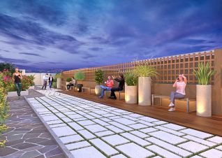 Each apartment features a spacious balconies. The window ledges, and wood-colored sun-shading screens—adds a textured and dynamic character to the building’s futuristic facade.